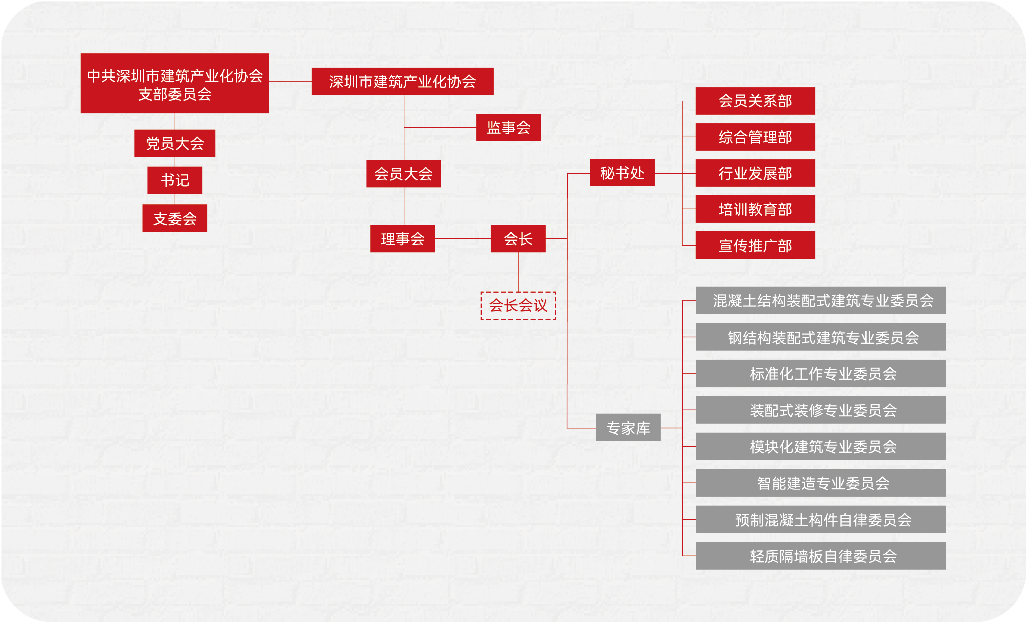 下设“混凝土结构装配式建筑专业委员会、钢结构装配式建筑专业委员会、标准化工作专业委员会、装配式装修专业委员会、模块化建筑专业委员会、智能建造专业委员会、预制混凝土构件自律委员会、轻质隔墙板自律委员会成员”8个专业委员会;同时受市住建局、市人社局委托,持续开展深圳市装配式建筑专家库、深圳市装配式建筑高评委两个专家库的入库及管理工作。这些专家是活跃在深圳市、珠三角区域、乃至全国建筑产业化各项工作的重要专业力量。
